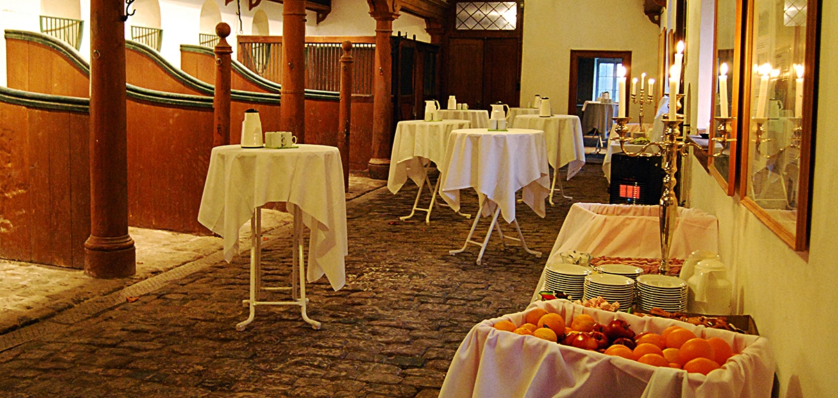 Bemærk: Herskabsstalden egner sig KUN til lidt mindre arrangementer, f.eks. receptioner og mindre udstillinger.